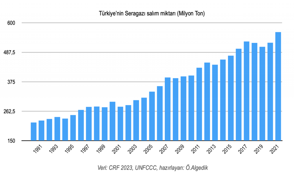 Böylece 1990 yılında atmosfere 219,5 milyon ton sera gazı salan Türkiye 2002’de 285 milyon ton salarken şimdi 564,4 milyon ton salarak inanılmaz bir artışı ilan etmiş oldu.